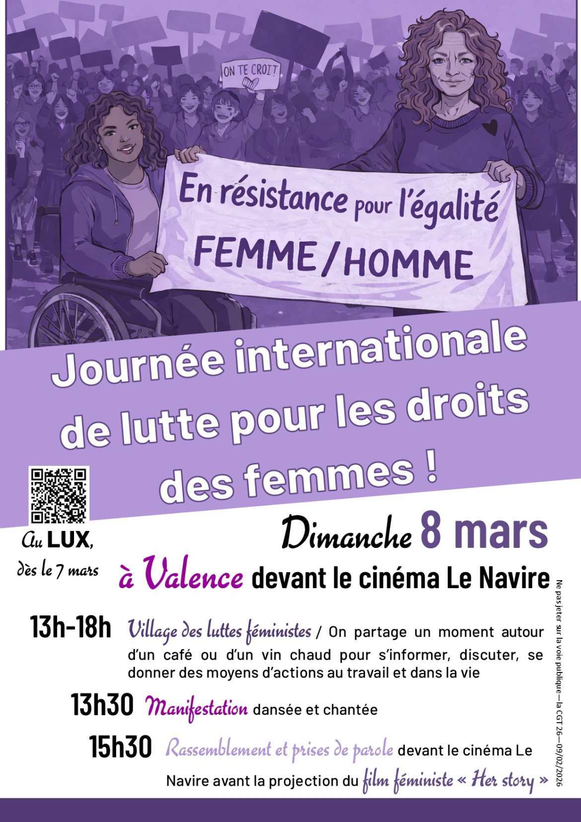 Valence, manifestation, 8 Mars, village des luttes, grève féministe, cinéma -
