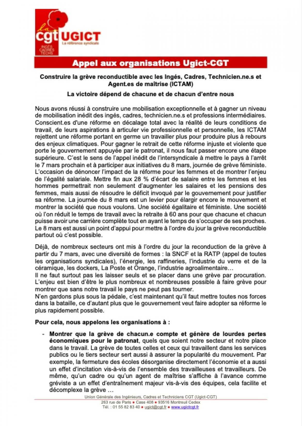 Le 7 Mars manifestations contre le recul de l’âge de départ à la retraite