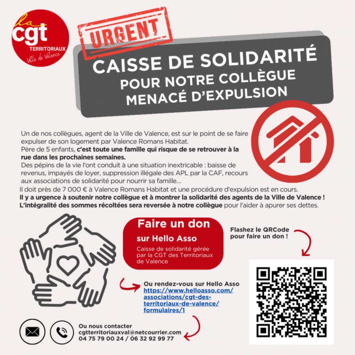 Mairie de Valence - Caisse de solidarité pour un agent menacé d'expulsion