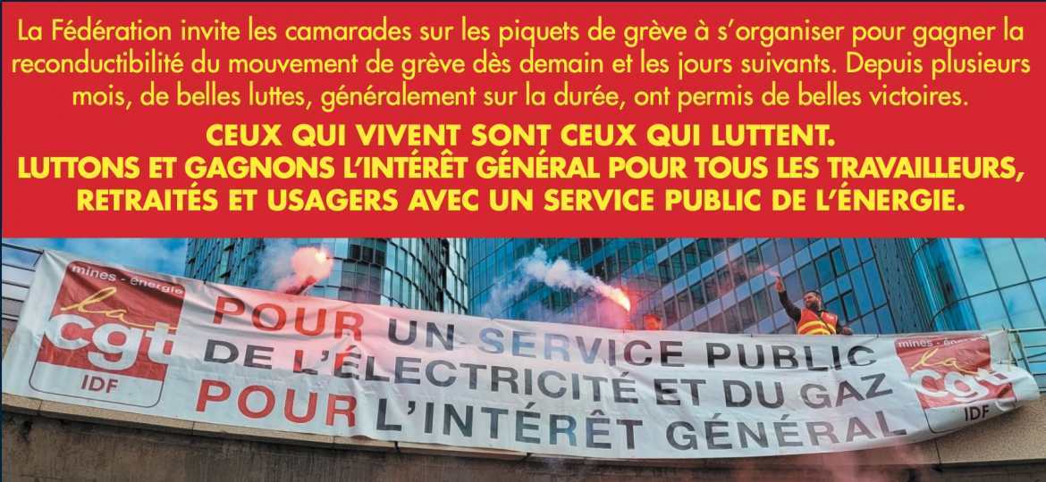 Dès hier soir, et très fortement, un mouvement large et reconductible porte la revendication d’une augmentation des salaires et des pensions.Face à L’INFLATION QUI S’EMBALLE DEPUIS UN AN (+ 5,2%) et aux prix à la consommation qui augmentent, les agents comme les retraités répondent présents pour la défense du Service Public de l’Énergie et exigent des