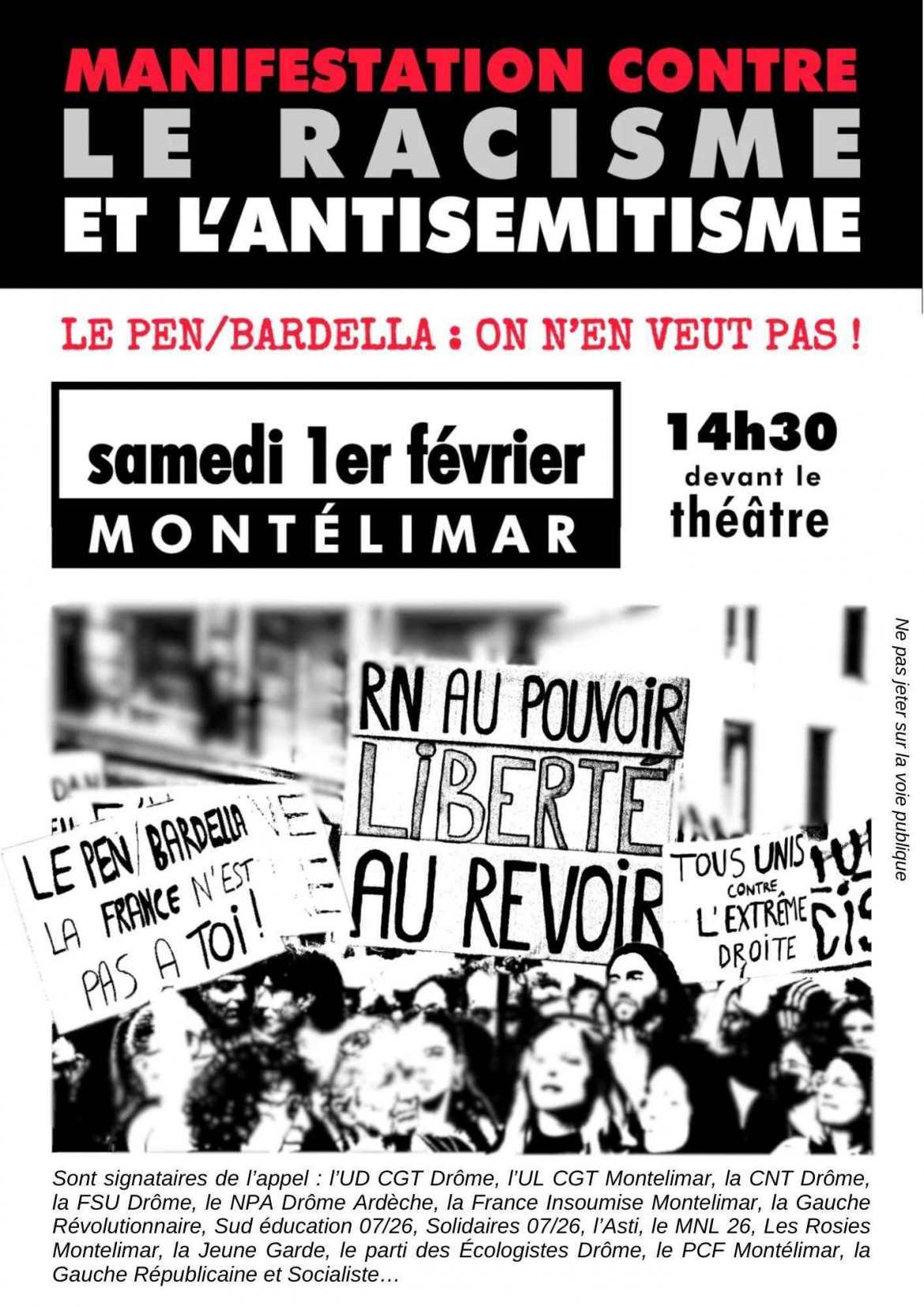 Samedi 1er février, 1200 manifestant-e-s dans les rues de Montélimar pour dire non au RN et ses idées racistes, son imposture sociale...