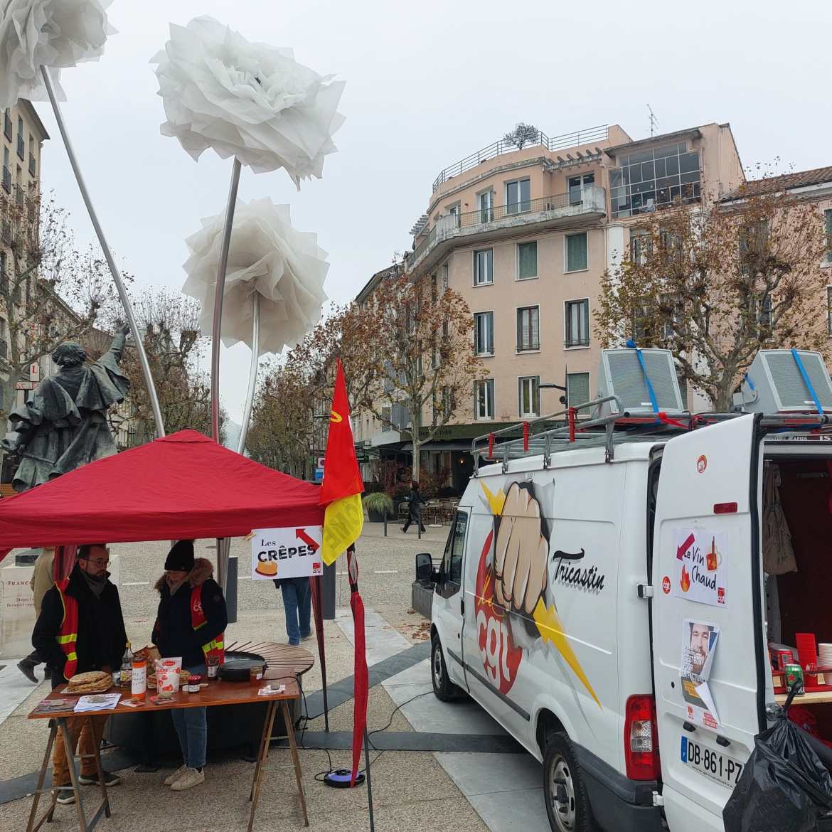 À Valence :- à partir de 11h, village des luttes sur le parvis de la gare avec stands d’infos syndicales, barbecue des cheminots et assemblée générale pour un débat sur les luttes en cours et à venir ;