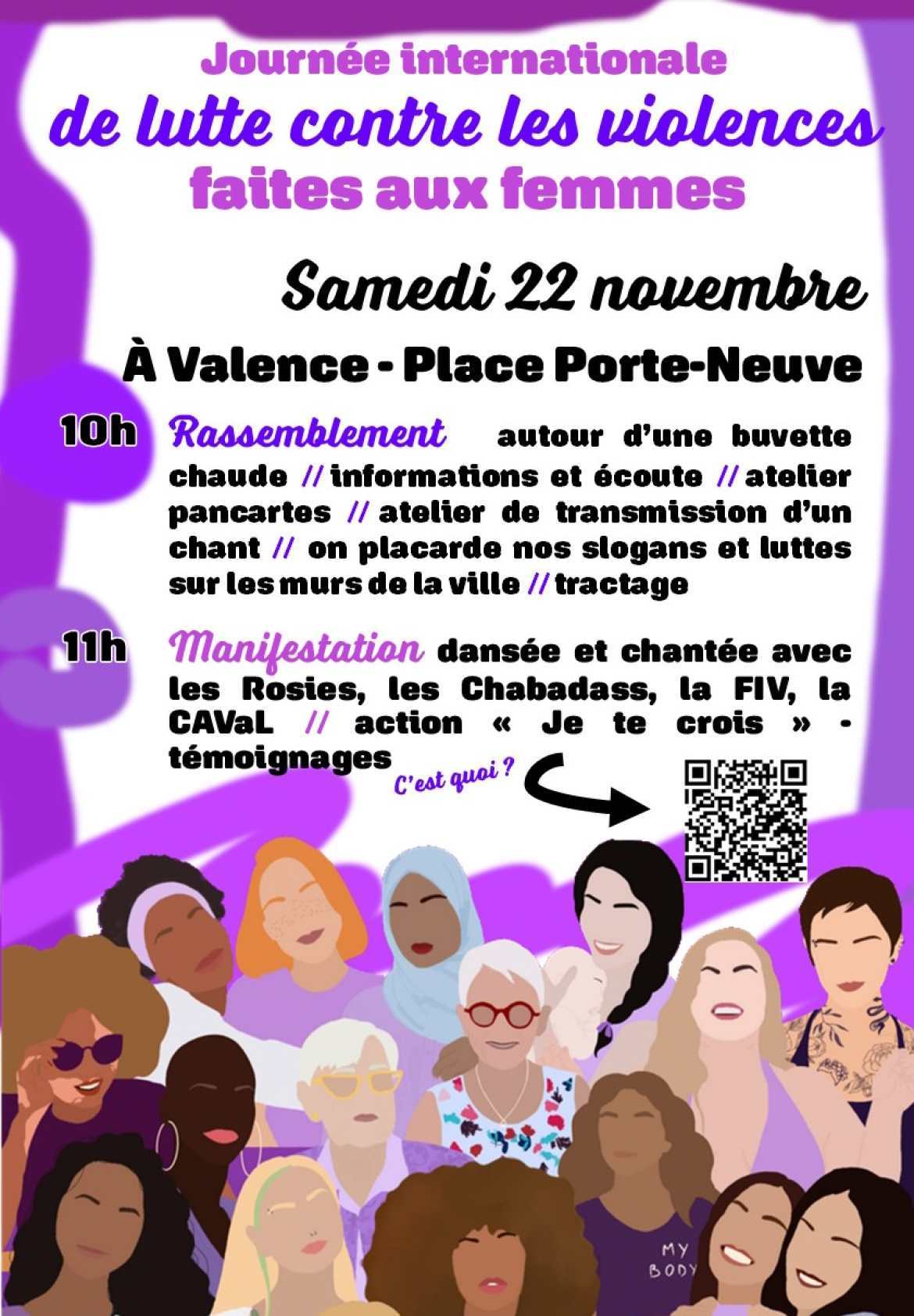 - danse avec les Rosies / chants avec les Chabadass, la Chorale Autogérée Valentinoise de Luttes / musique avec la Fanfare Insurrectionnelle Valentinoise / actions "Je te crois" et Chaussures rouges le long du parcours