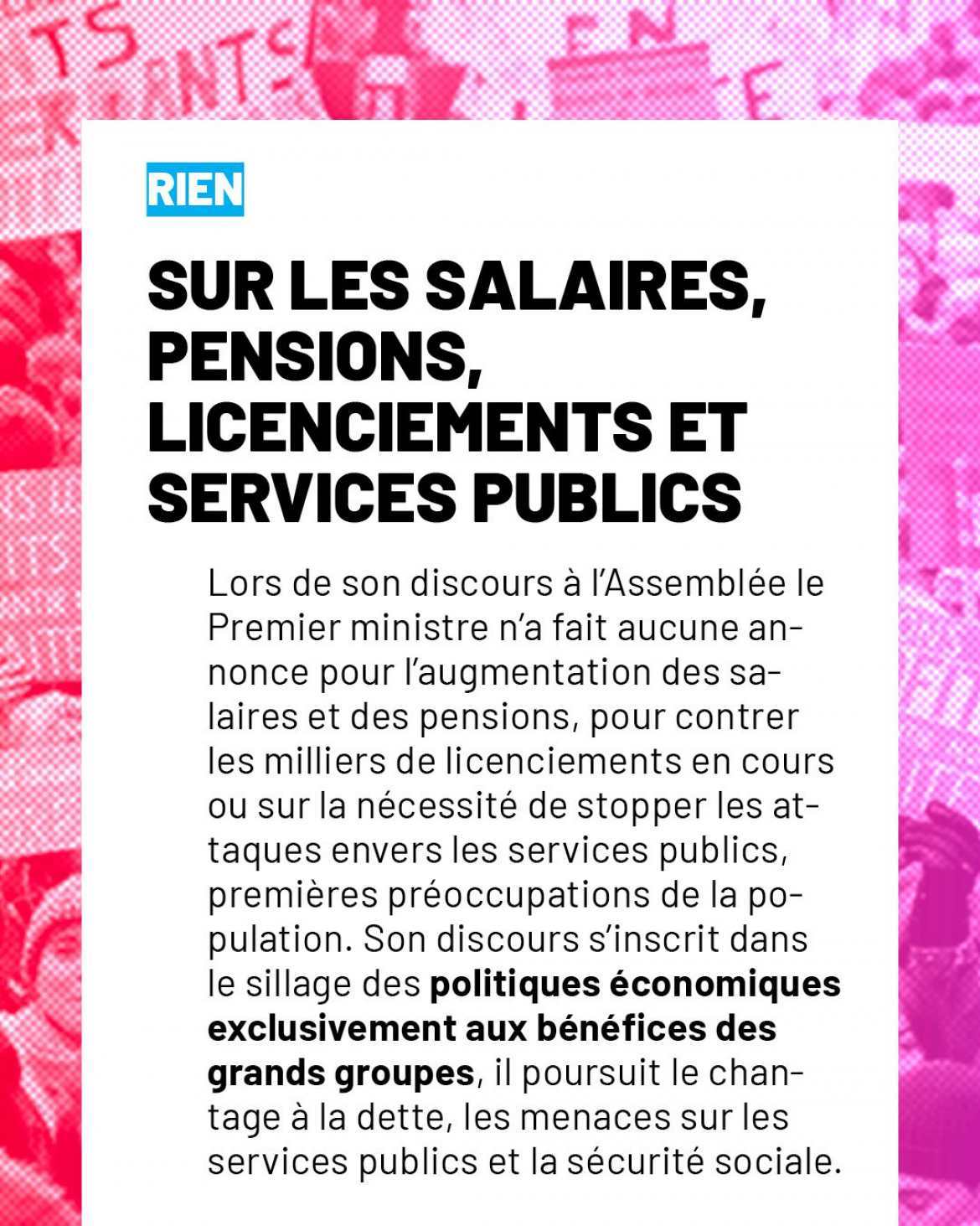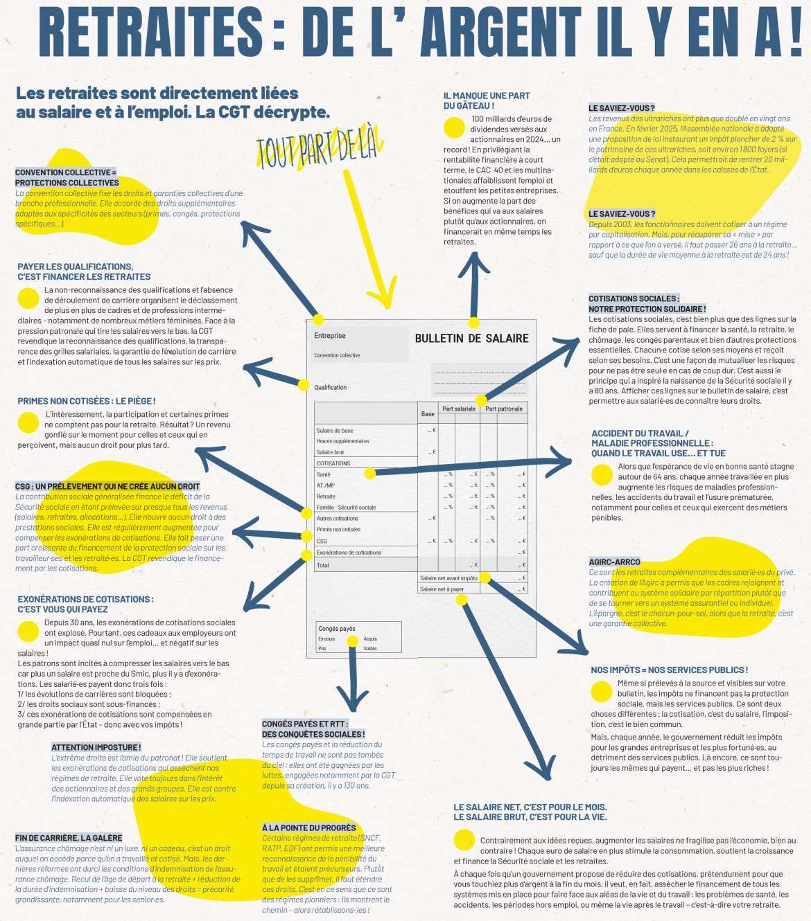 À l’inverse, les exonérations de cotisations sociales, la pression sur les bas salaires et le recours massif aux primes non cotisées affaiblissent le financement de nos retraites. Les salarié·es payent 2 fois : moins de cotisations, c'est de moins bonnes pensions.