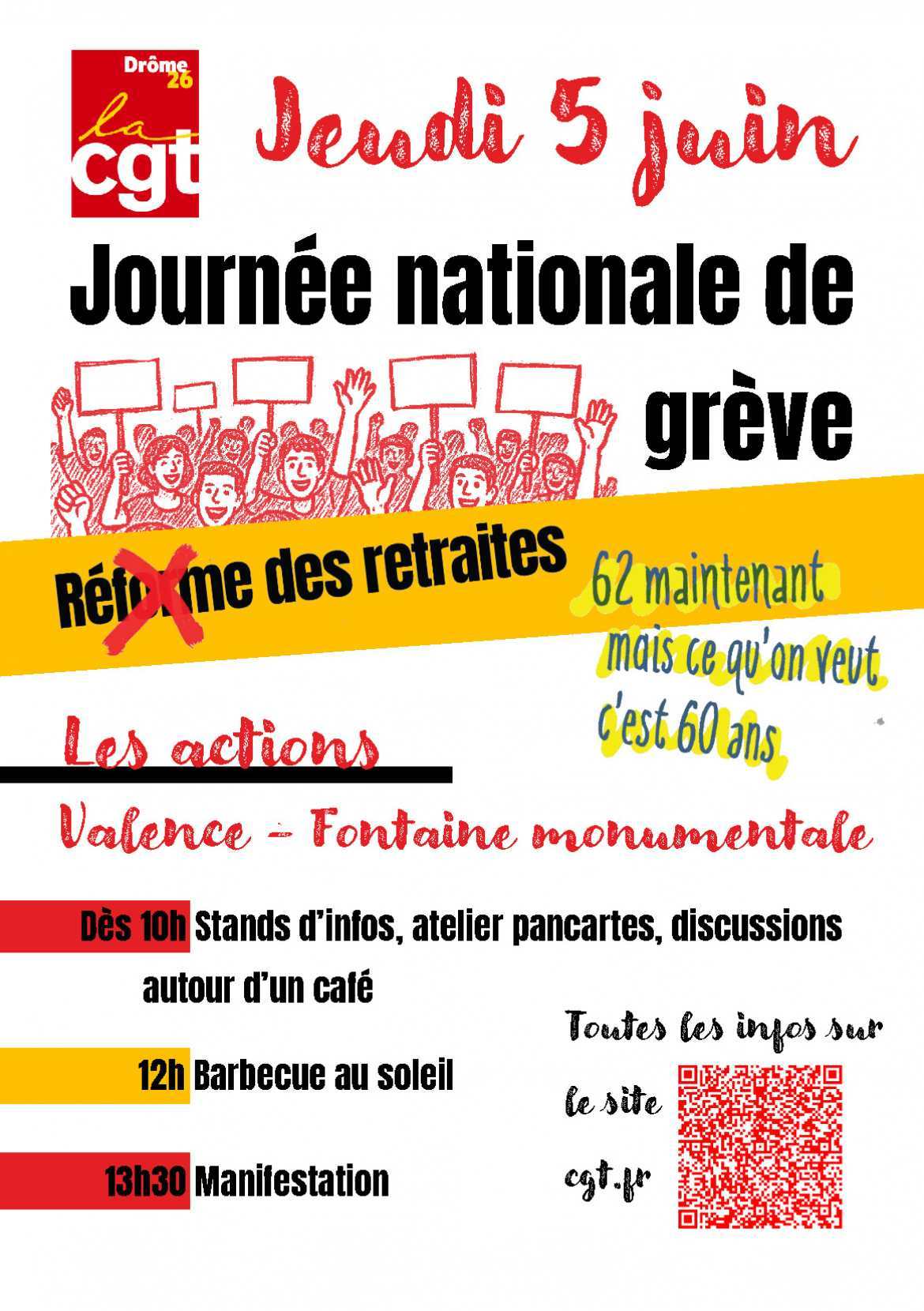 manifestation, grève, Emploi, Services Publics, retraite, Salaires, 5 juin -