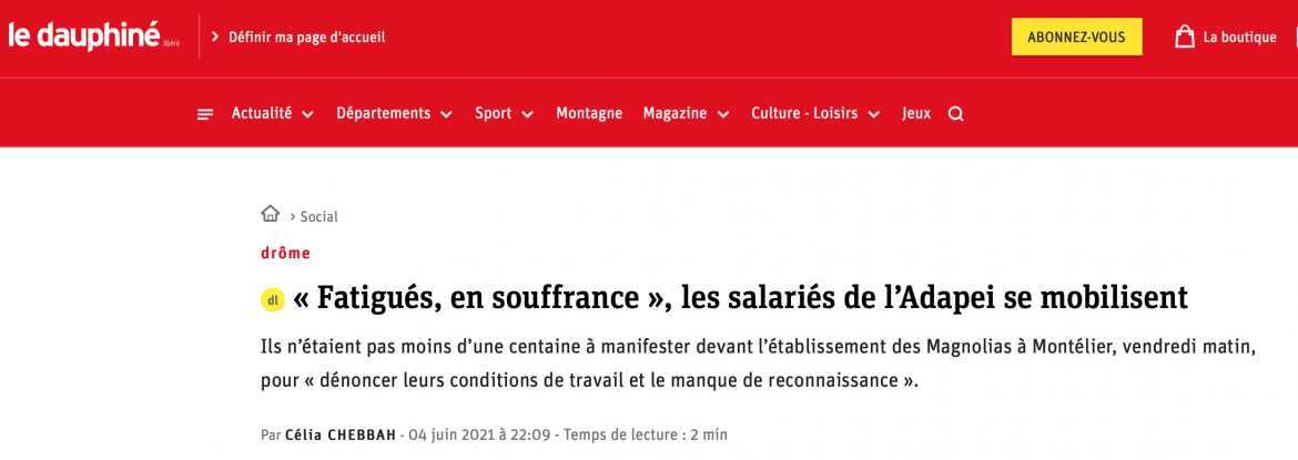 Les salariés se sentent encore plus méprisés dans leurs revendications.Nous invitons l’ensemble des salariés de l’ADAPEI de la Drôme