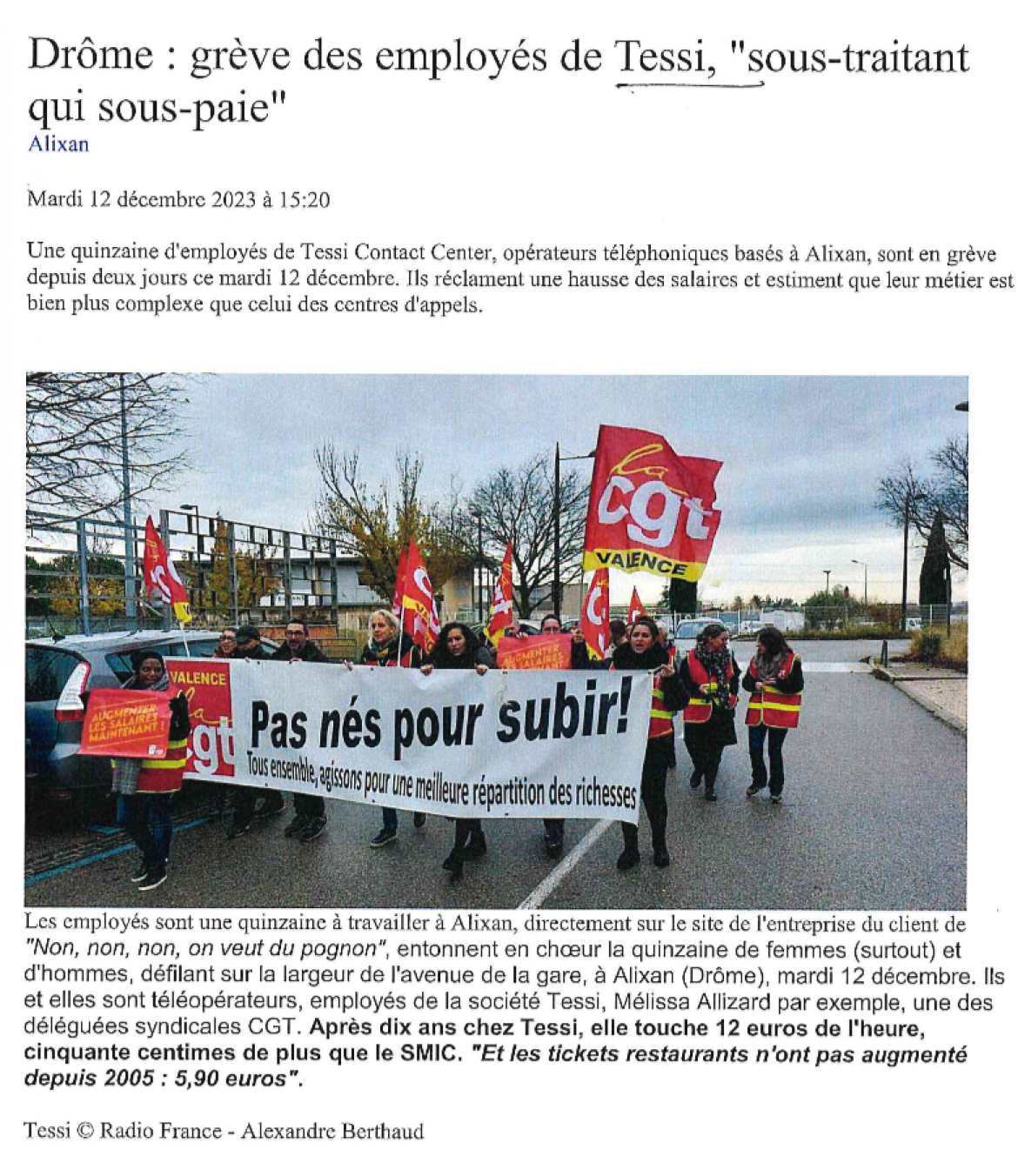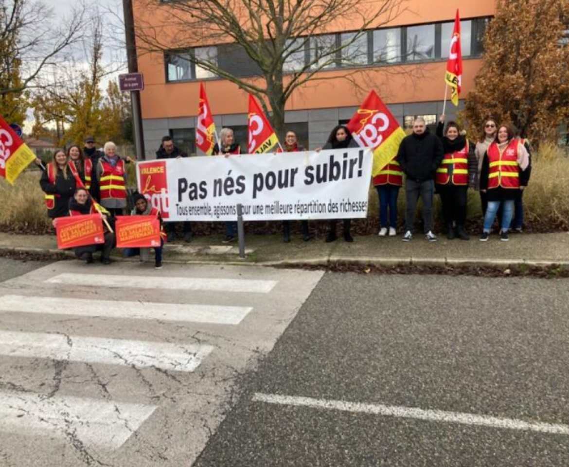 Ce matin (13 Décembre) de 9h30 à 10h30, l'Union Locale CGT de Valence et l'Union Départementale CGT de la Drôme sont venues soutenir le mouvement des Salariés TESSI de la plateforme AMUNDI (Sous-traités, sous-payés), avec Gérard PONSON (dit PONPON) et moi-même.