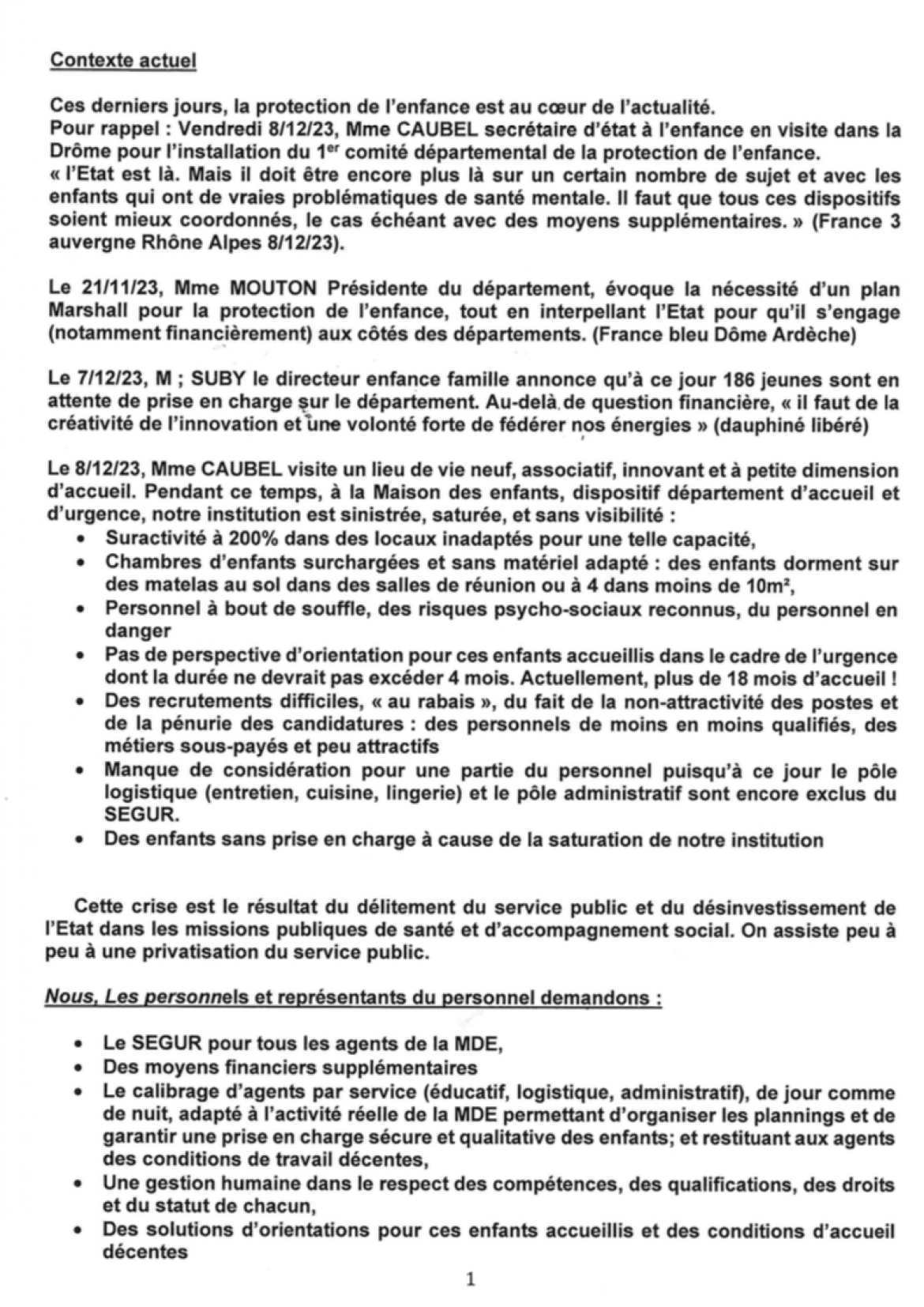 Un courrier a été envoyé le 10 novembre a la direction précisant le mécontentement du personnel et ses revendications.