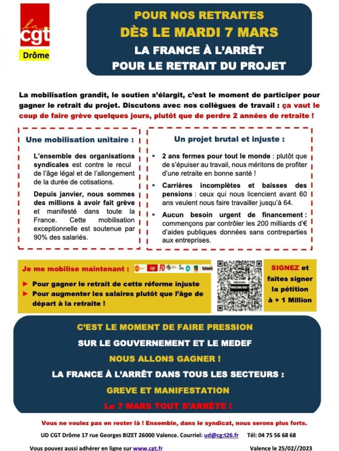 Le 7 Mars manifestations contre le recul de l’âge de départ à la retraite