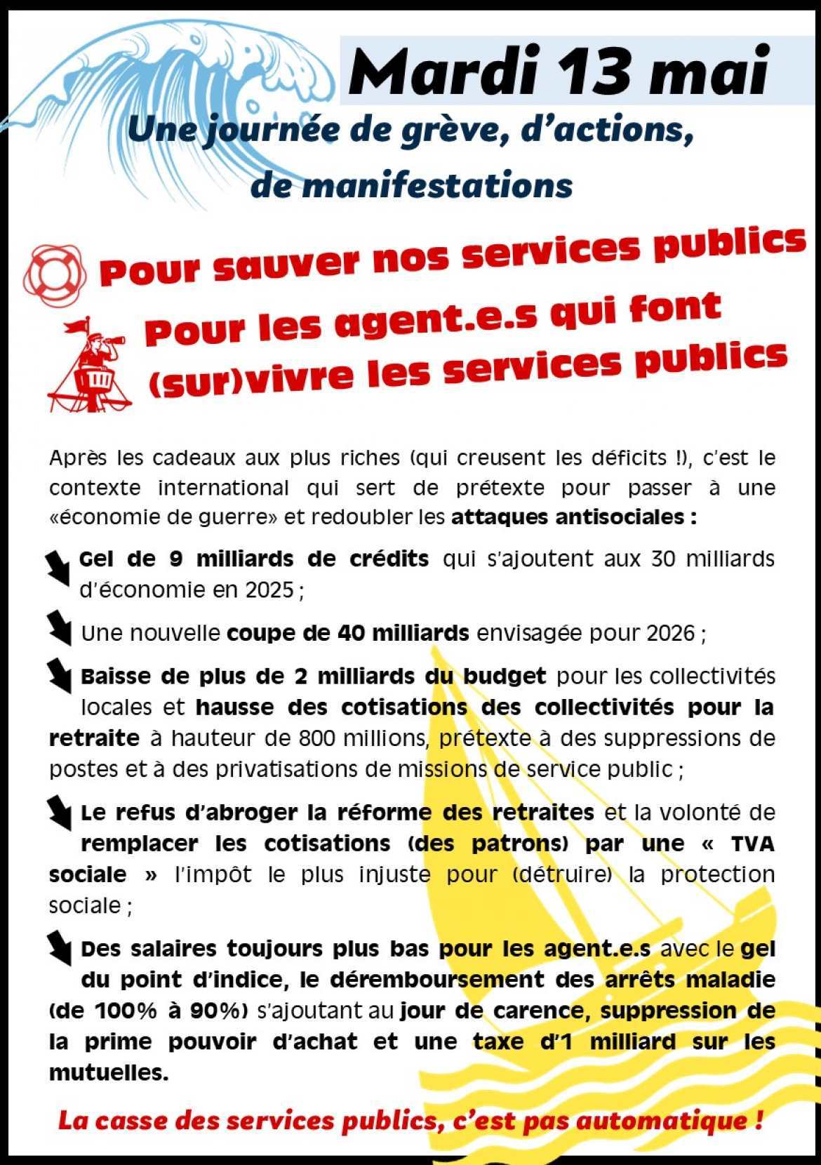 Mardi 13 mai, ensemble, uni.e.s, on déferle pour sauver nos services publics !