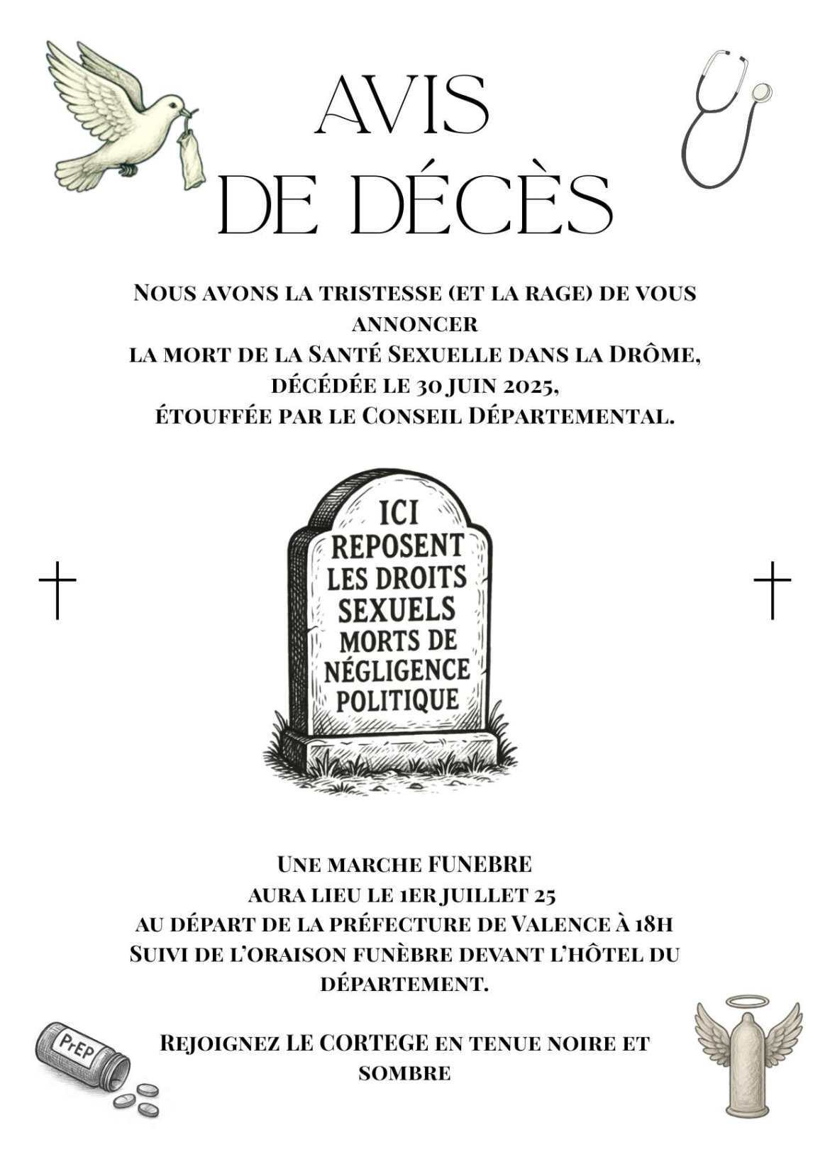 Mardi 1er juillet - Marche funèbre pour les Centres de Santé Sexuelle de la Drôme