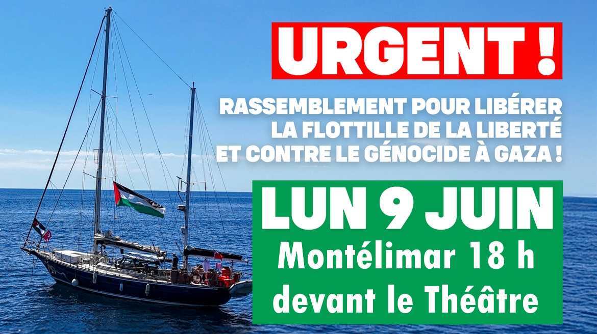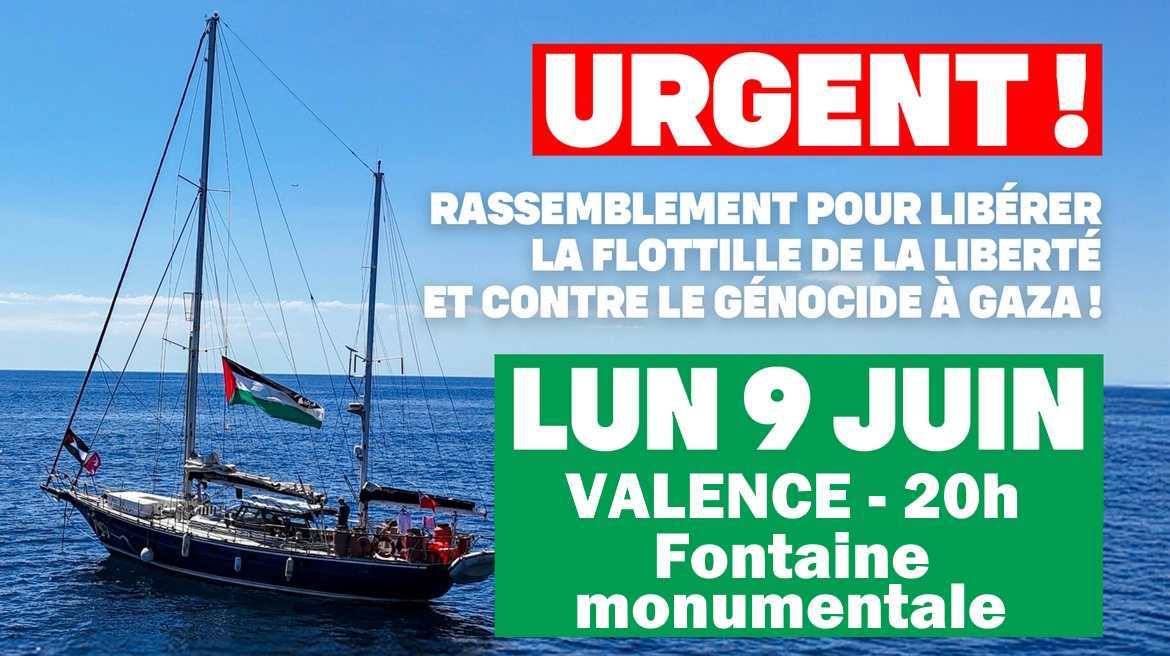 Nous nous joignons aux organisations qui appellent ce 9 juin à se rassembler à Valence à la Fontaine monumentale en soutien à la Flotille de la Liberté et pour la fin du génocide à Gaza.