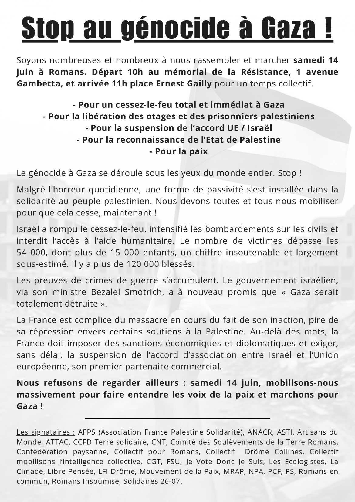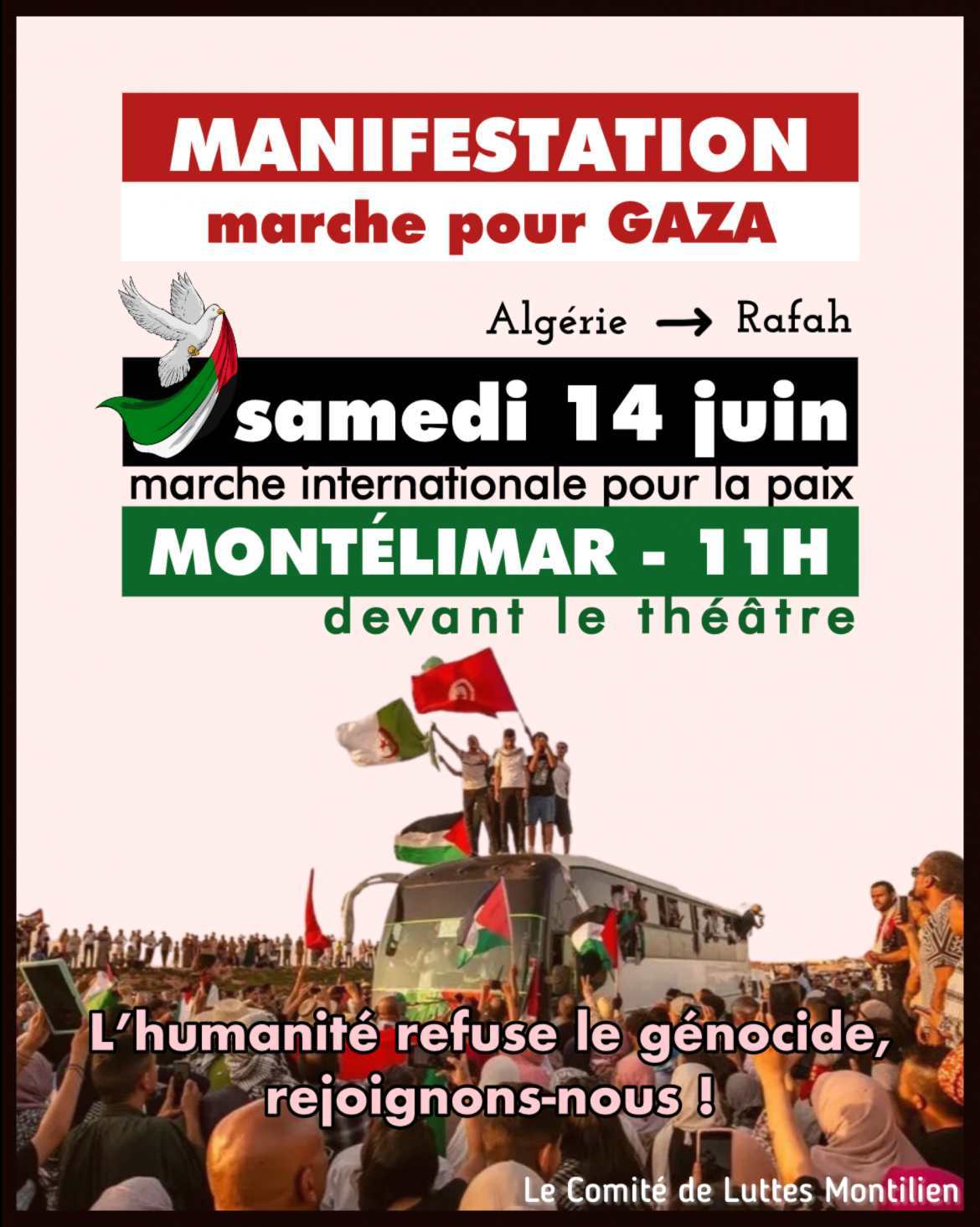 Samedi 14 juin - Marche pour Gaza à Romans et Montélimar