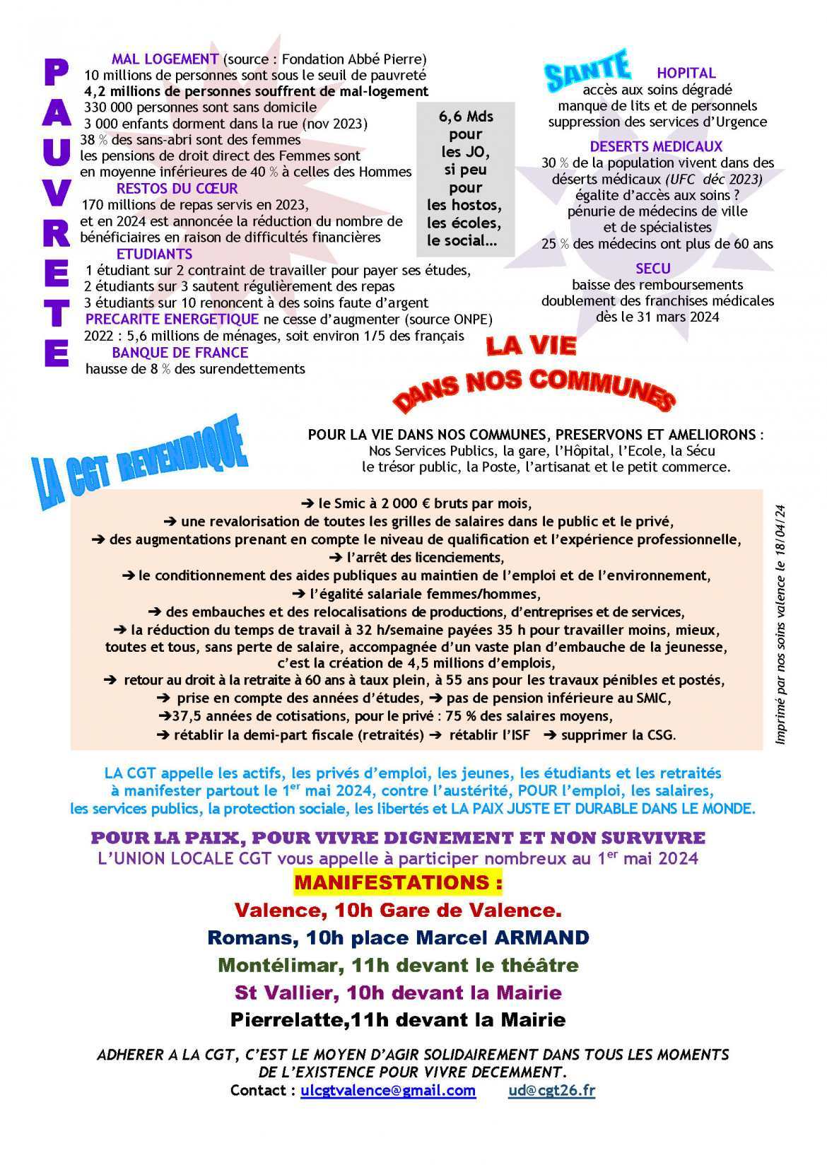 - Pierrelatte : Rassemblement à 11H00, Mairie de Pierrelatte, puis moment de convivialité à l'Union locale CGT.