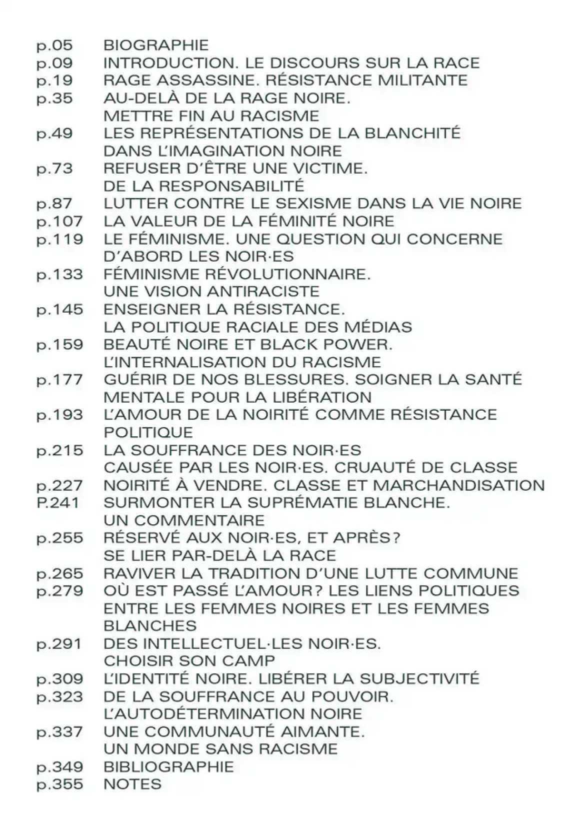 Avant que Black Lives Matter et #MeToo ne viennent secouer l’Amérique et le monde occidental, bell hooks montrait, dans cet essai incisif, que l’abolition du racisme et l’éradication du sexisme vont de pair. Sans le féminisme, la lutte antiraciste reste une affaire d’hommes. Sans l’antiracisme, le féminisme s’expose à servir de courroie aux logiques de domination raciale. L'autrice insiste sur le bien-fondé de la rage qui anime les masses populaires et la jeunesse noire et sur la nécessité d’en faire un moteur de changement social radical. Elle propose une théorie et une pratique révolutionnaires, dont la fin est une communauté solidaire fondée sur l’égalité réelle et la volonté de tou.te.s de travailler au changement.